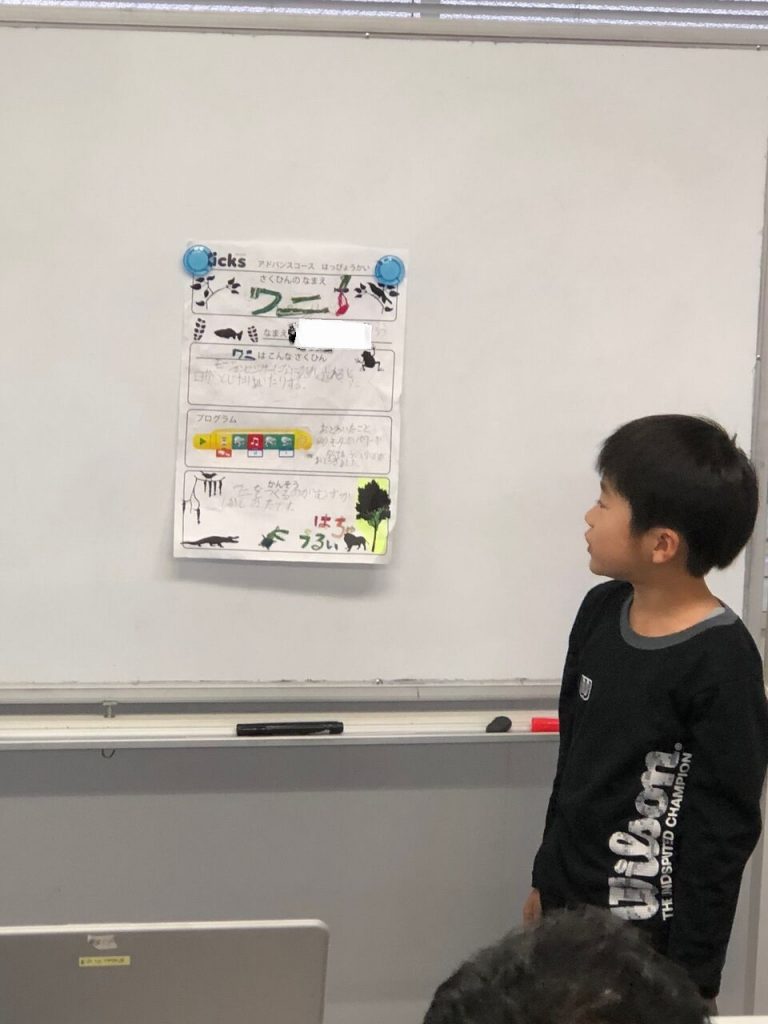 自分のお名前、作成した作品、感想をそれぞれが考えた自分の言葉で発表しました。