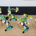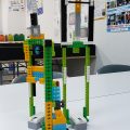 人体の関節について学んだ後はプログラムです。動かすのは前回8回で組み立てた「トルネードマン」。両腕に人をのせてぐるぐる回る遊具です。前回はシンプルに回しただけでしたが、今回はモーションセンサーが登場。これによりプログラムがより複雑になり、順を追って考える必要性が高まります。前回よりも長くなったプログラムがうまくいって、思い通りにトルネードマンが動けばそのうれしさは格別です!モーションセンサーを握ったり離したりして、にこにこしながら何度も試していました。