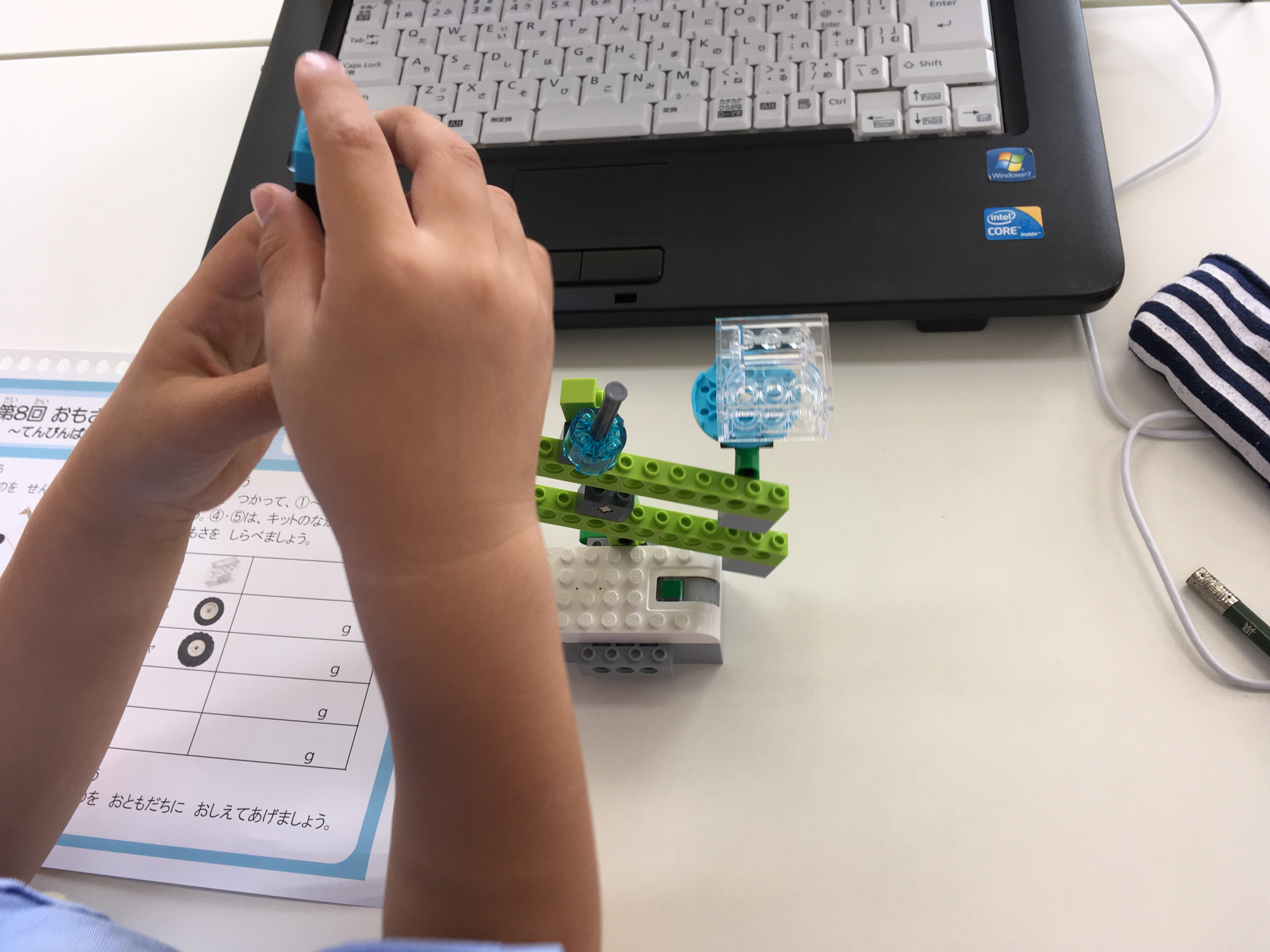 ちょっと難しかったですが、「カム」が回転すると、応援団が上下する動きをすることを理解してくれました。