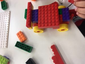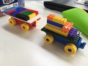 そして、小さなレゴブロックを使って、「はたらく車」を作っていきました。