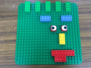 レゴで行うので、目のパーツをレゴに張り付けていきました。