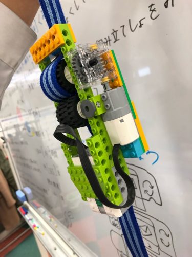 アドバンス生は宇宙エレベーターを作成しております🌍ベルトをタイヤで挟んで上下に行きできるようになっています(*^-^*) コントローラーも作成したのでハンドルを下に傾けると下降、上に傾けると上昇します!