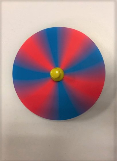 実際にコマを回して色が混ざって見える様子を観察して頂きました。