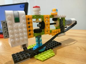 レゴブロックで組み立てた自転公転モデルでは、プログラムで回転させて、自転と公転、月の見え方を立体的に理解しました。